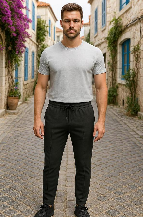 Erkek Yüksek Bel önden Bağcıklı Cepli Waffle Pantolon
