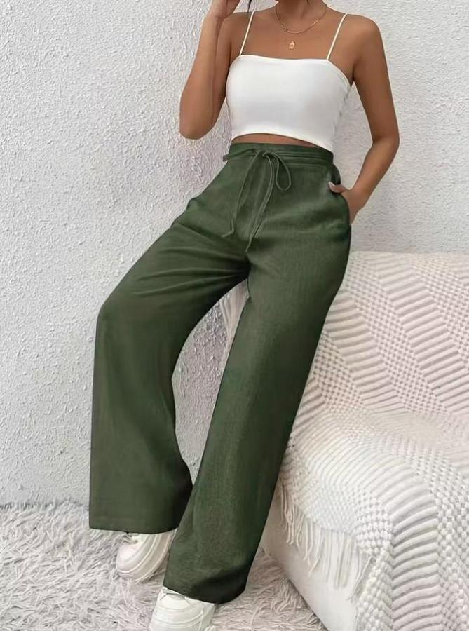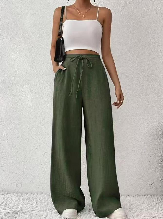 AnasayfaTüm ÜrünlerAlt GiyimPantolonYüksek Bel Önden Bağlamalı Geniş Kesim Keten Pantolon