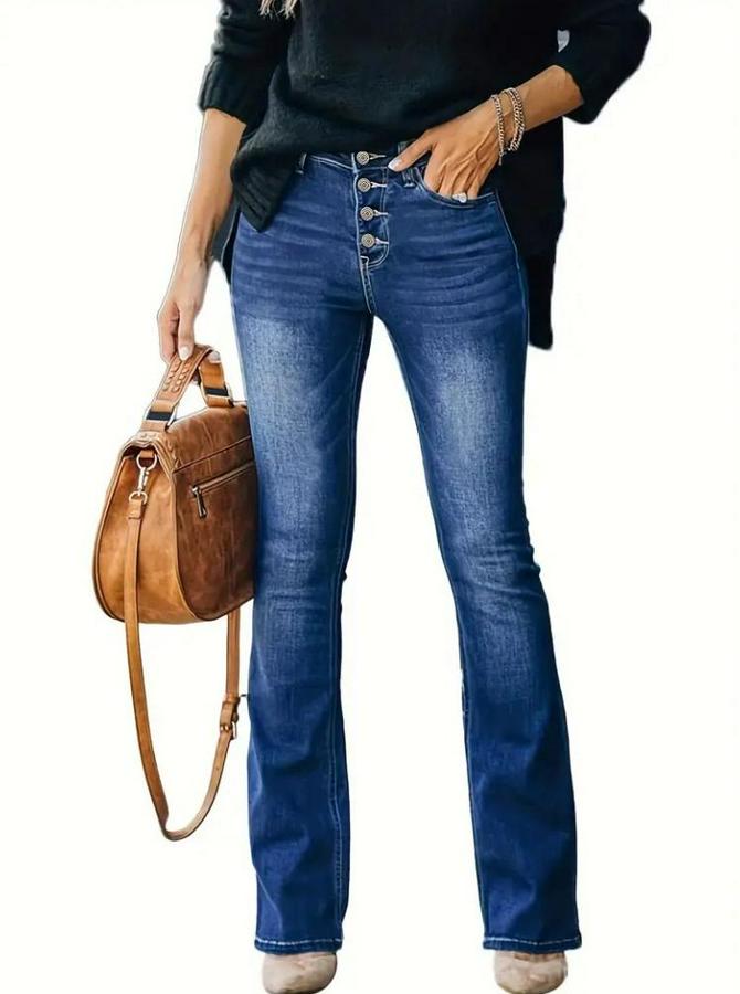 Kadın Yüksek Bel önden Düğmeli Cep Detay Ispanyol Paça Denim Pantolon