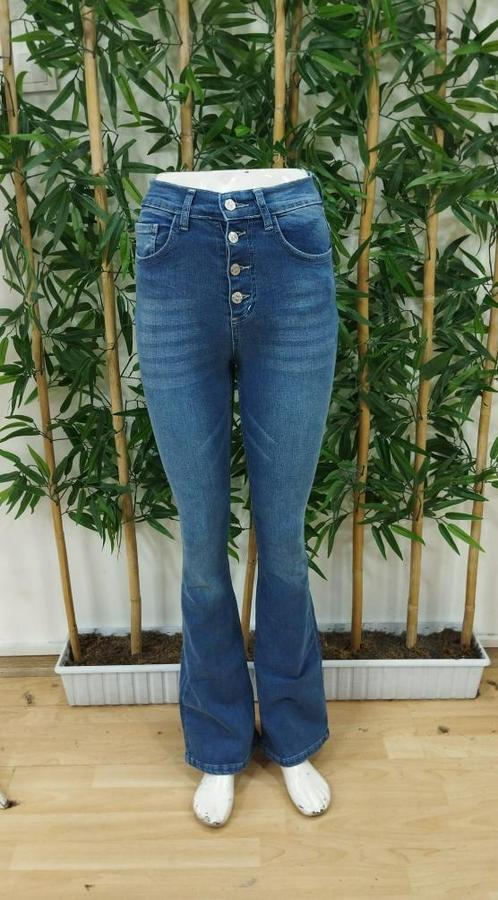 Yüksek Bel Önden Düğmeli Cep Detay Ispanyol Paça Denim Pantolon