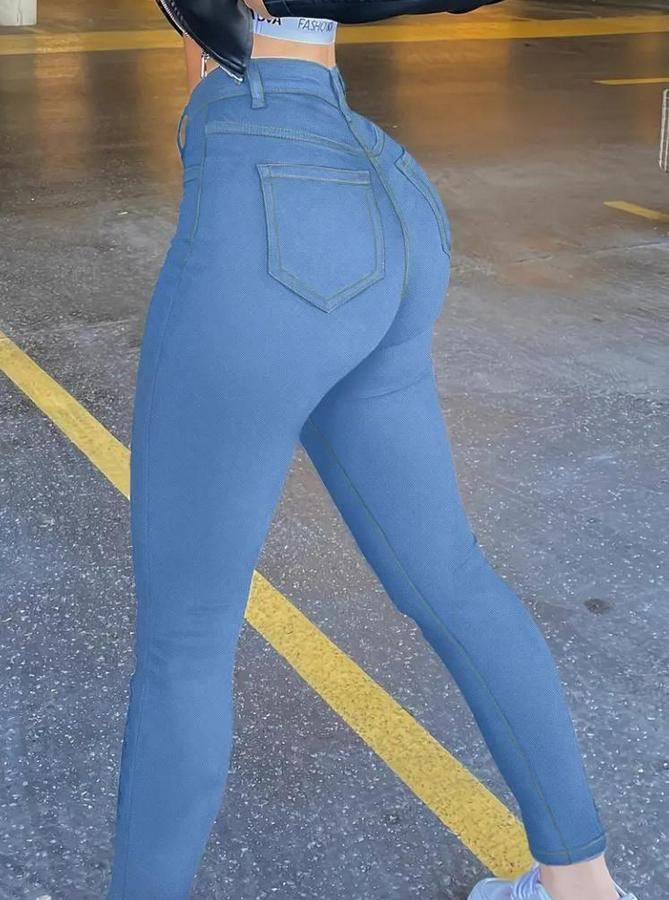Yüksek Bel Önden Düğmeli Dar Kesim Kot Pantolon
