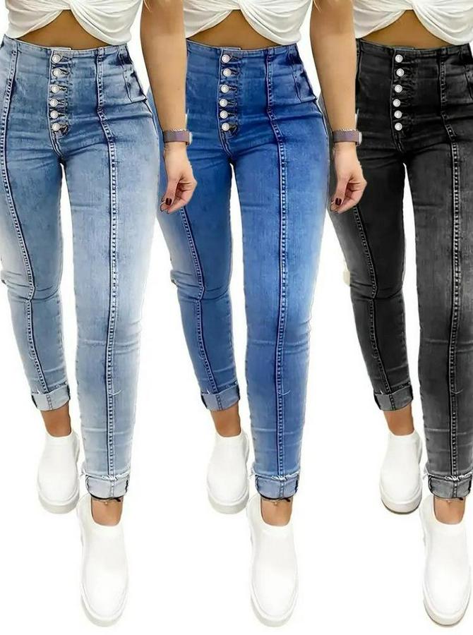 Yüksek Bel Önden Düğmeli Jean Pantolon
