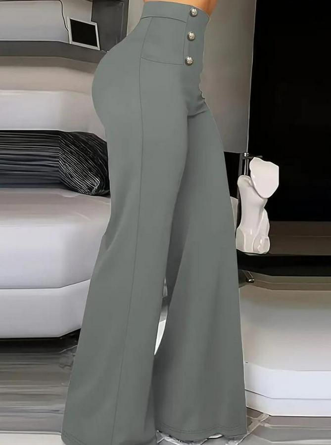 Kadın Yüksek Bel önden Düğmeli Uzun Paçaya Doğru Geniş Ithal Krep Pantolon