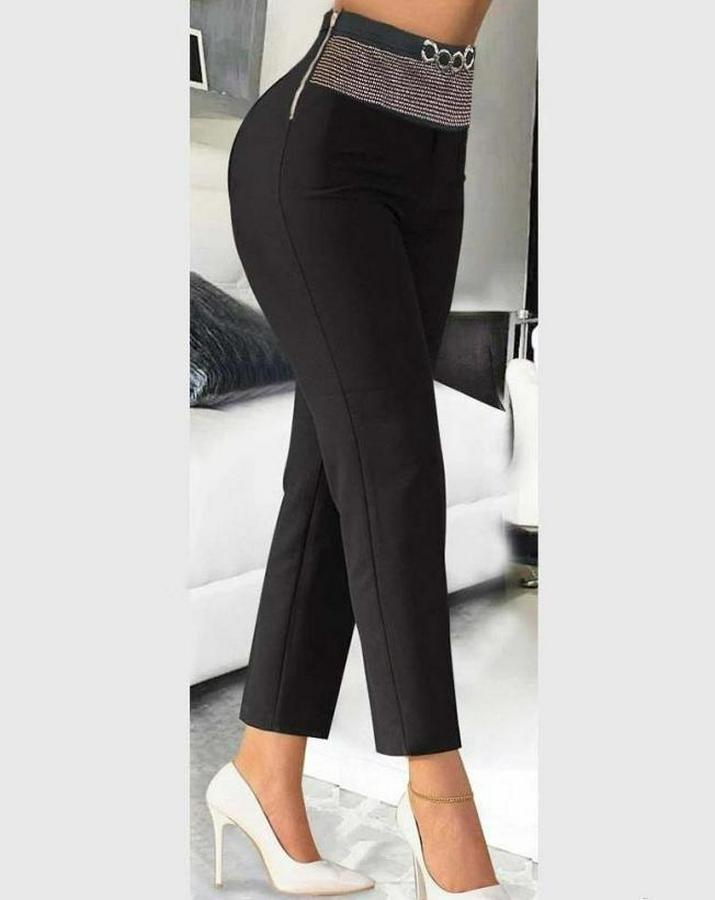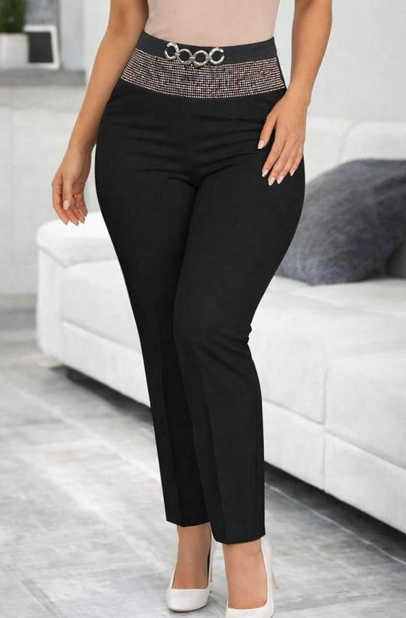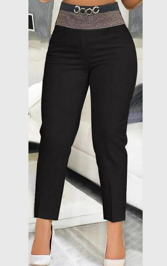Kadın Yüksek Bel önden Taşlı Ve Tokalı Ithal Krep Pantolon