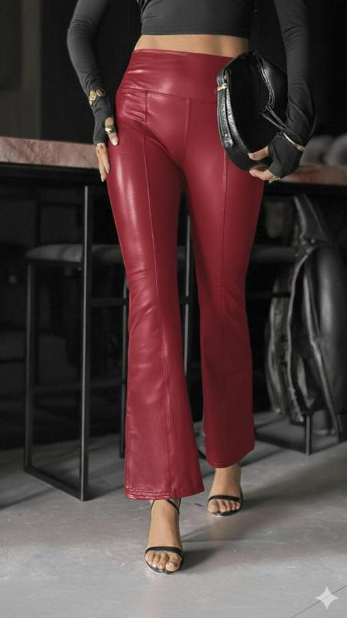 Kadın Yüksek Bel Paçaya Doğru Geniş Deri Pantolon