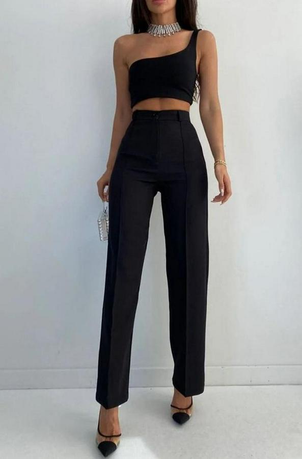 Yüksek Bel Pileli Palazzo Pantolon
