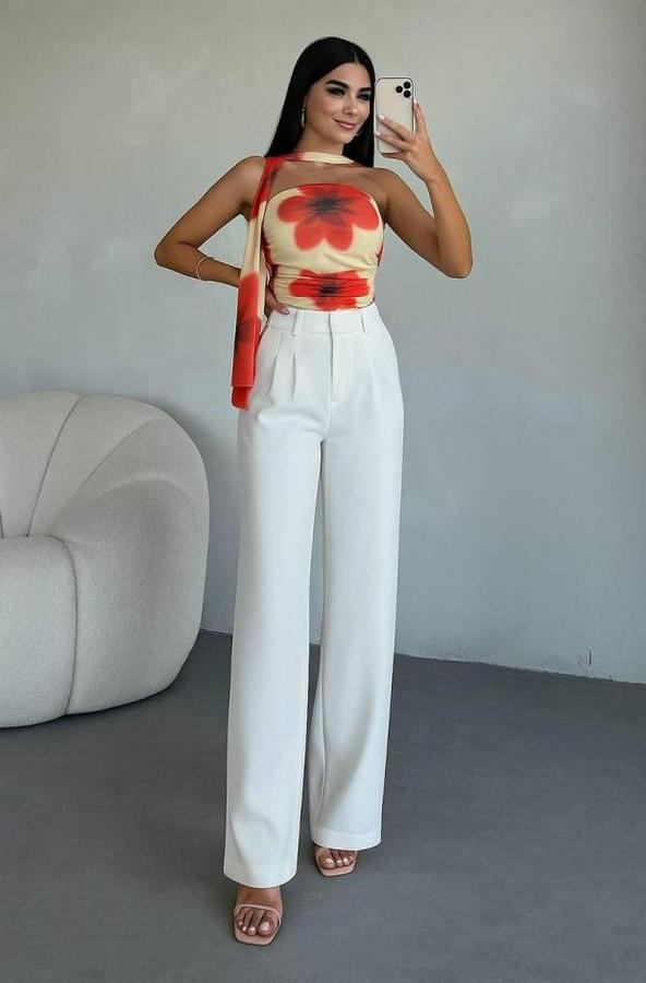 Yüksek Bel Plise Detay Bol Paça Pantolon