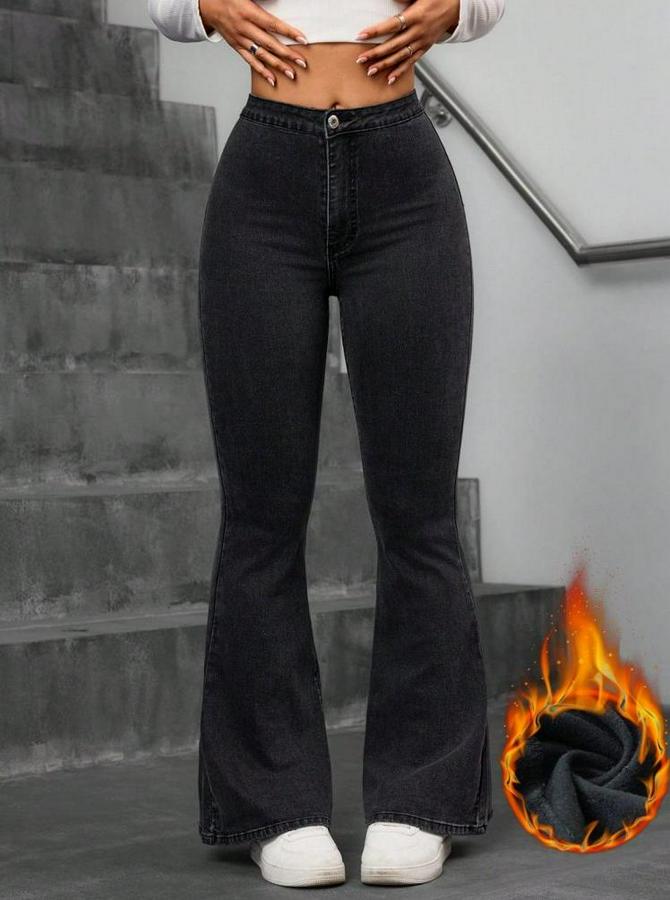 AnasayfaTüm ÜrünlerAlt GiyimPantolonYüksek Bel Tek Düğmeli Paçaya Doğru Genişleyen Kot Pantolon