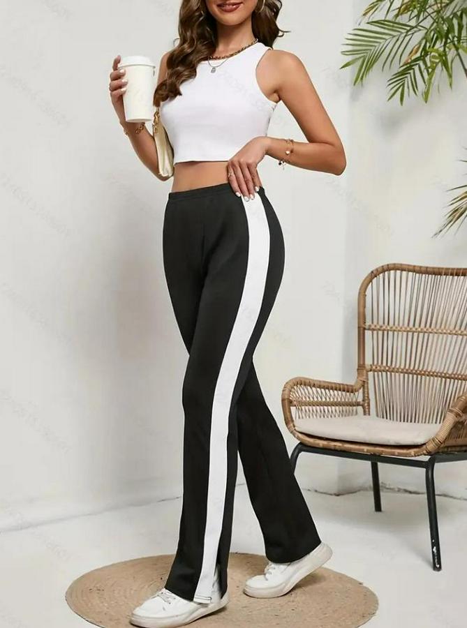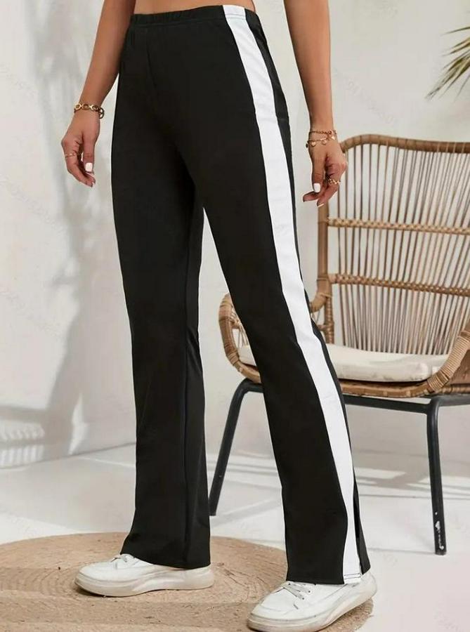 Kadın Yüksek Bel Yan şerit Detaylı Yırtmaçlı Viskon Iki Iplik Pantolon