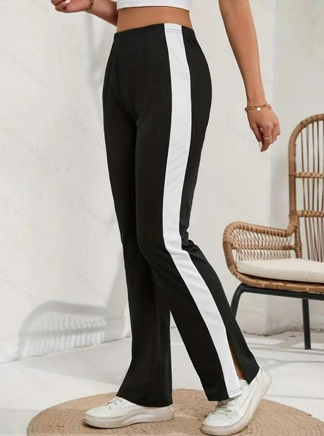 Yüksek Bel Yan Şerit Detaylı Yırtmaçlı Viskon Iki Iplik Pantolon