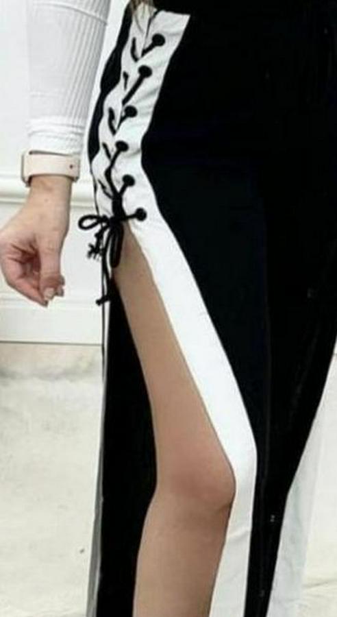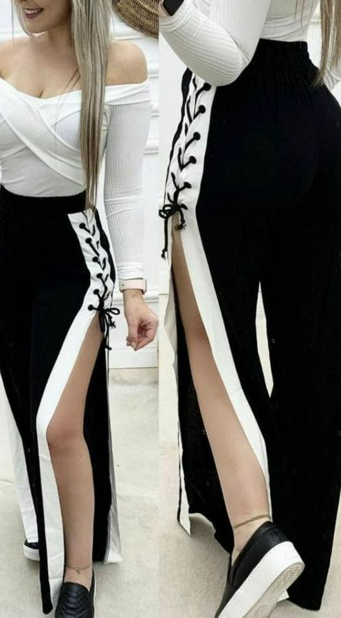 Yüksek Bel Yandan Çapraz Bağcıklı Yırtmaçlı Viskon Iki Iplik Pantolon