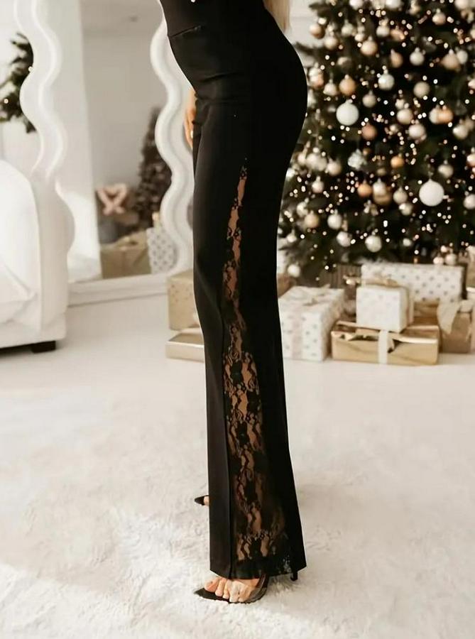 AnasayfaTüm ÜrünlerAlt GiyimPantolonYüksek Bel Yanlardan Dantelli Paçaya Doğru Geniş Kesim Detaylı Ithal Krep Pantolon
