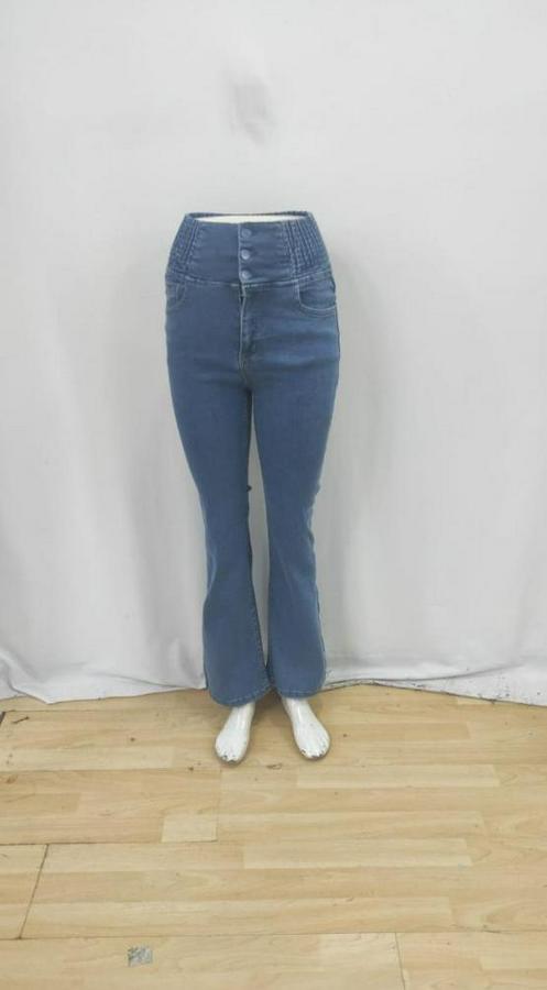 Kadın Yüksek Bel Yanları Lastik önü Düğmeli Kot Pantolon