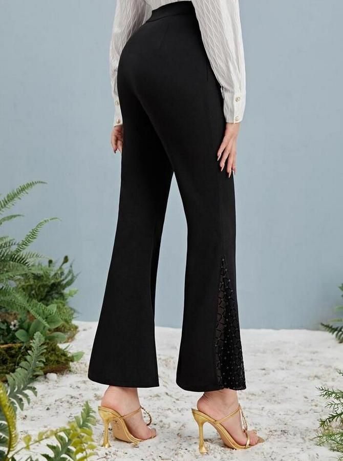 Kadın Yüksek Bel Yanları Tül Detaylı Dalgıç Tayt Pantolon