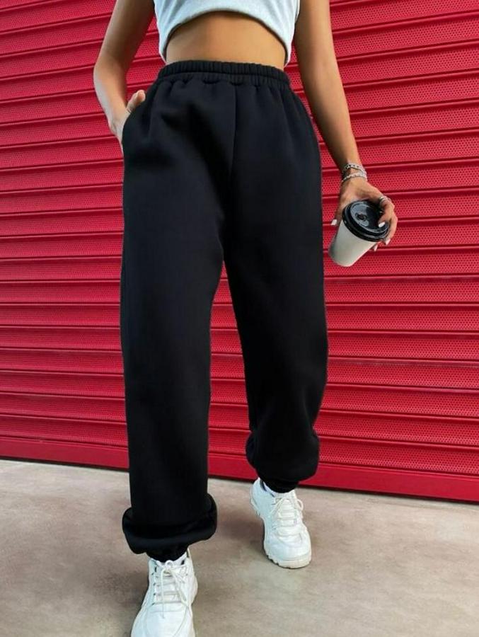 Yüksek Beli Lastikli Içi Polar 3 Iplik Eşofman Altı