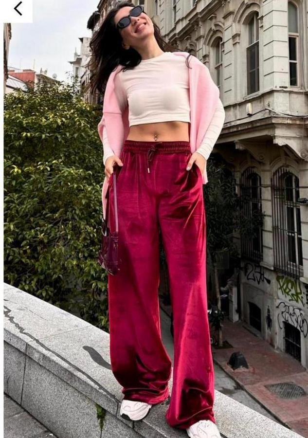 AnasayfaTüm ÜrünlerAlt GiyimPantolonYüksek Ben Beli Lastik Detay Kadife Kumaş Bol Paça Pantolon