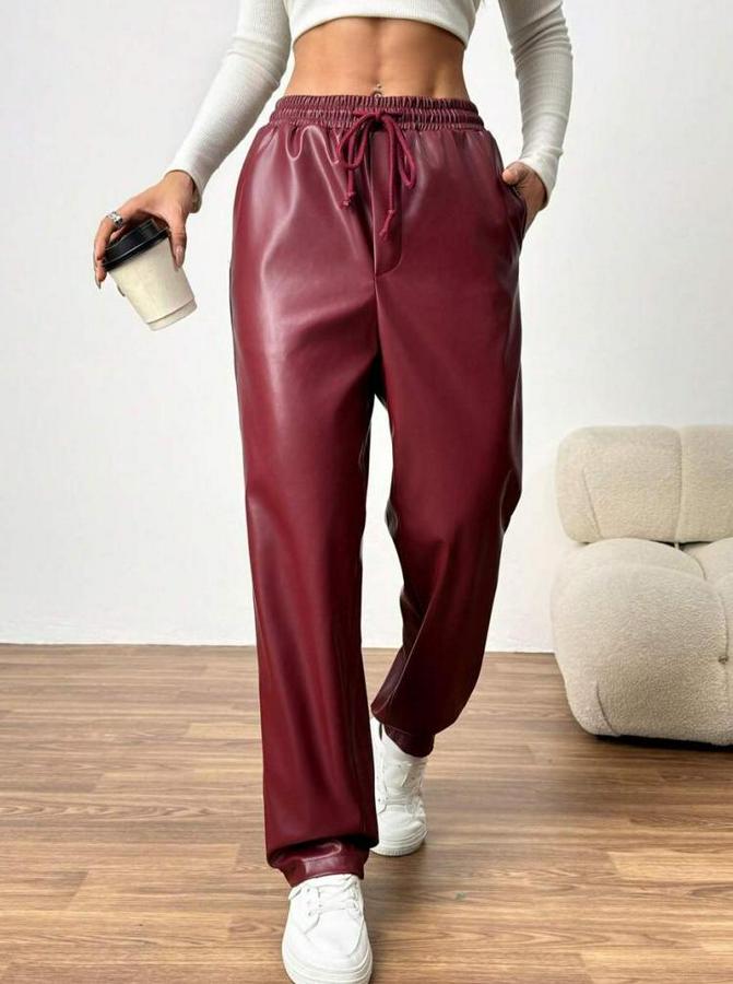 AnasayfaTüm ÜrünlerAlt GiyimPantolonYüksel Bel Bağcıklı Deri Pantolon