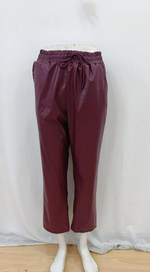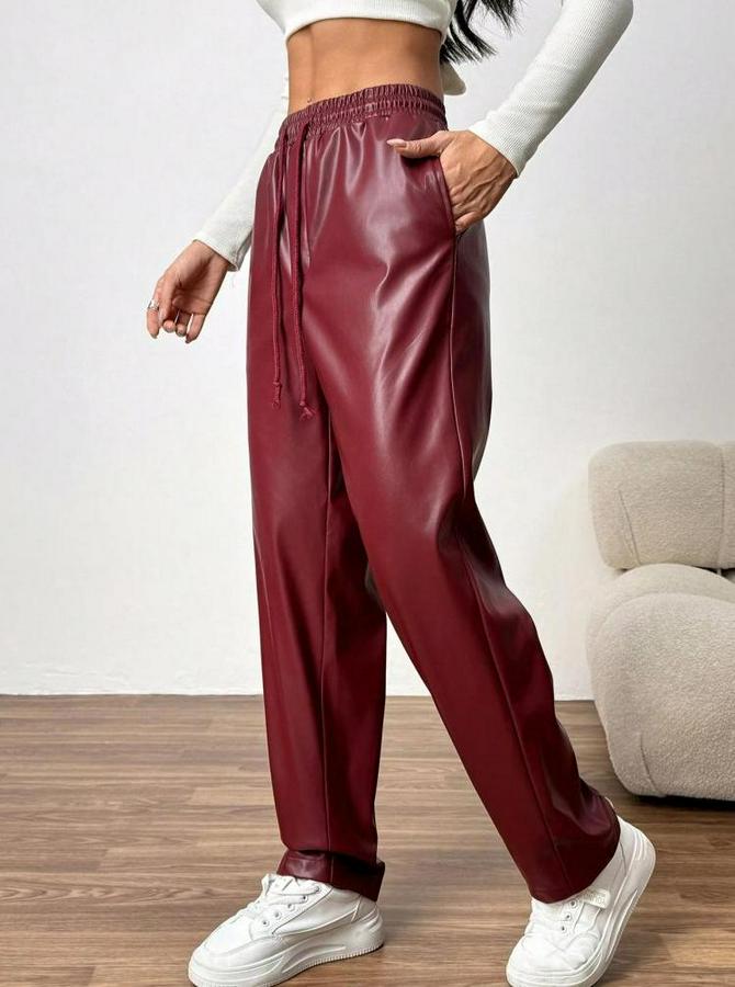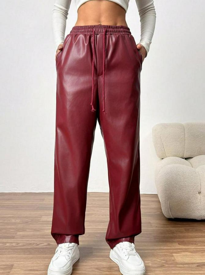 Kadın Yüksel Bel Bağcıklı Deri Pantolon