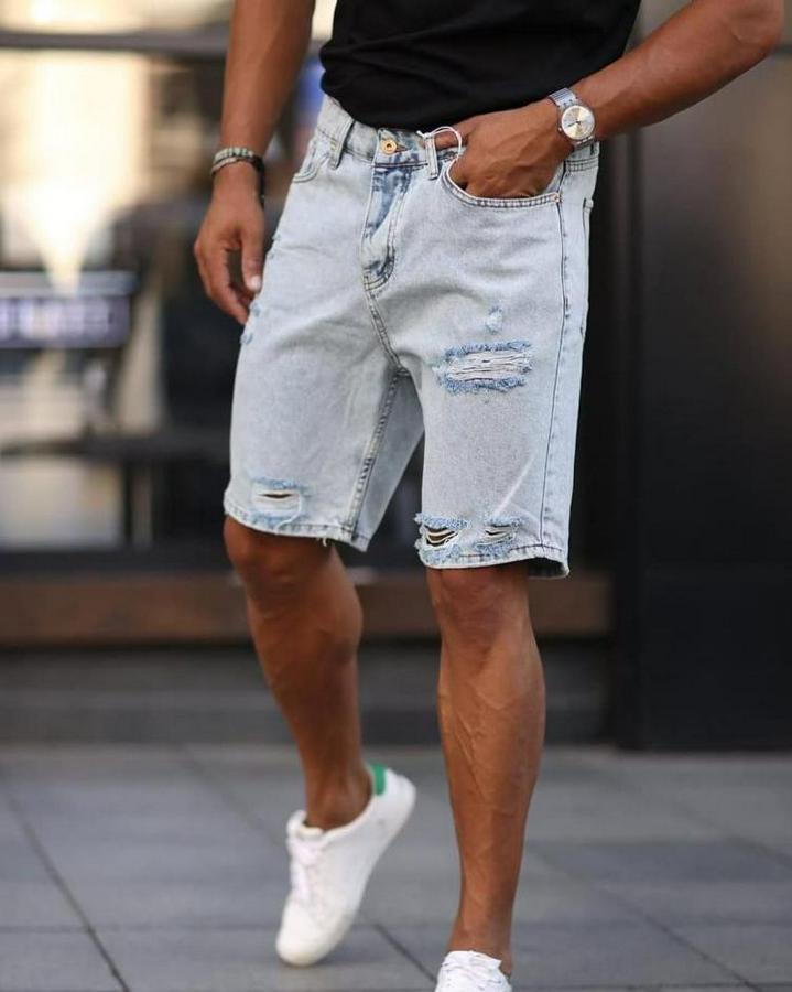 Erkek Açık Mavi Detaylı Kot Şort