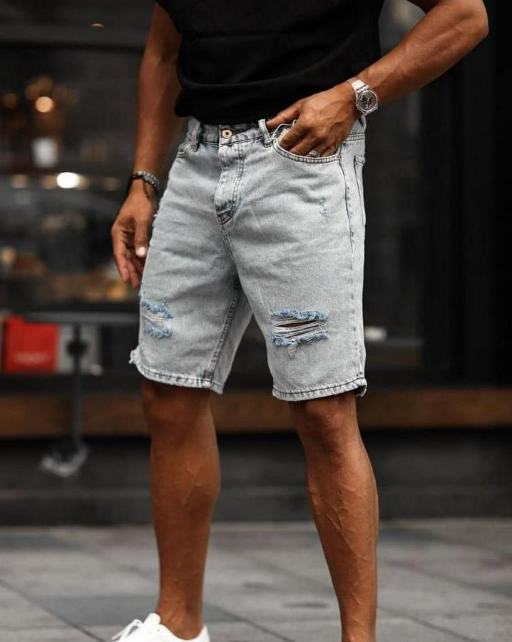 Kar Yıkama Yırtık Detaylı Şort