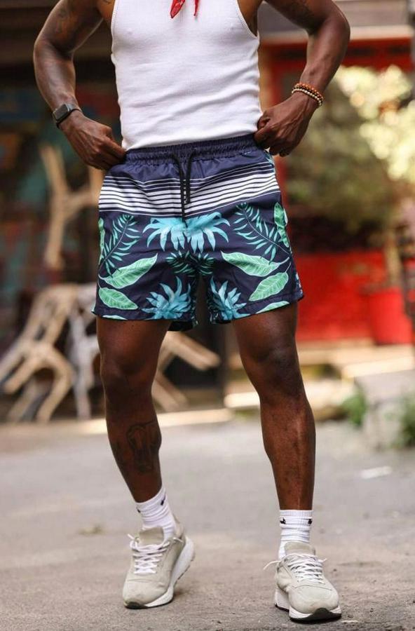Erkek Palmiye Desenli Deniz Cepli Şort - Mavi