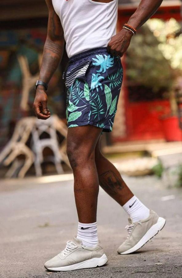 Palmiye Desenli Deniz Cepli Şort