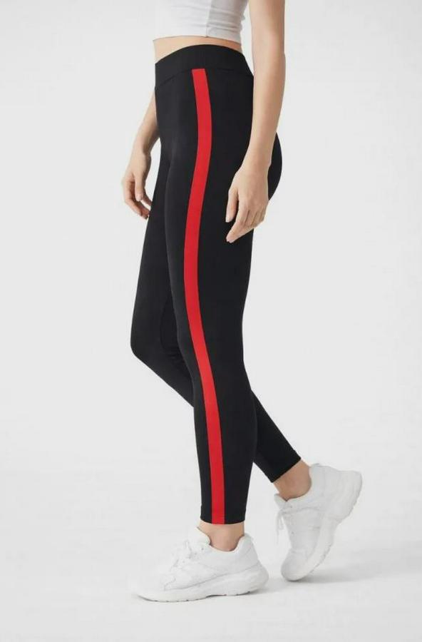 Likralı Yan Kırmızı Şeritli Detaylı Tayt