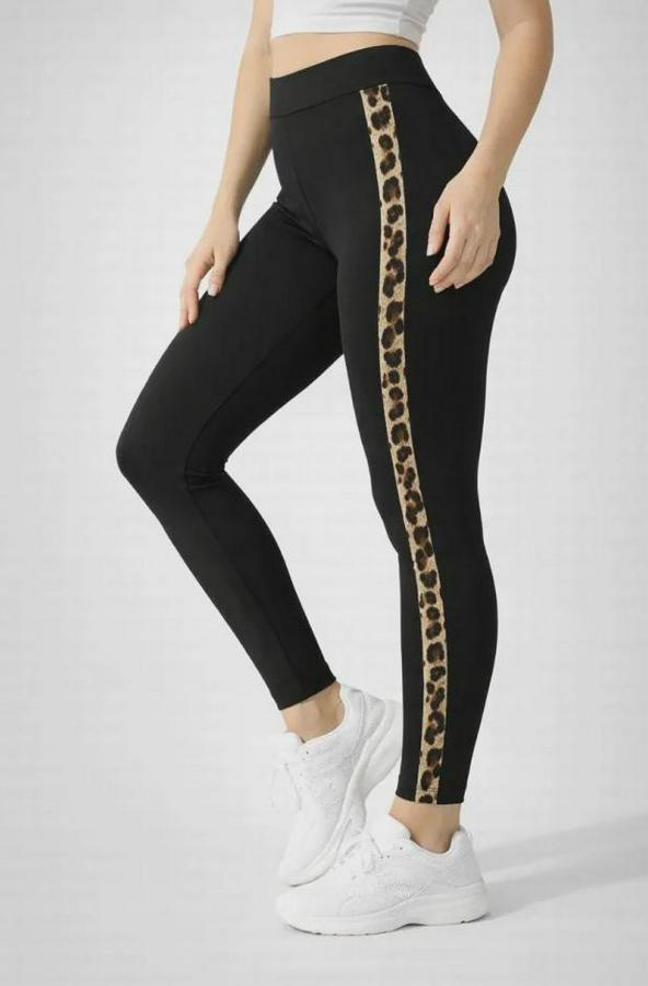 Likralı Yan Leopar Şeritli Detaylı Tayt