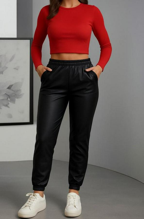 AnasayfaTüm ÜrünlerAlt GiyimTaytPaçası Lastikli Cep Detaylı Deri Tayt