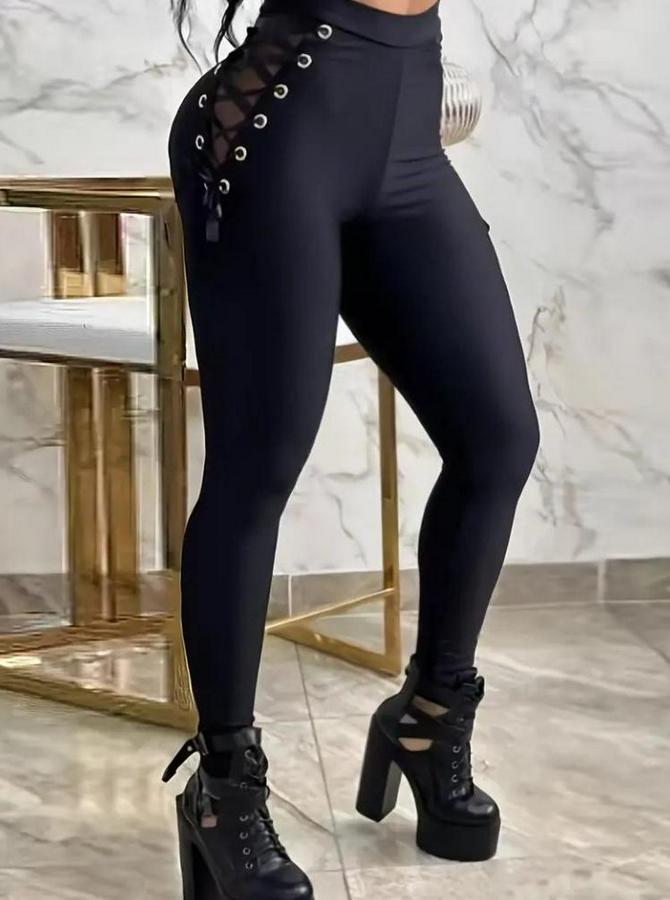 Kadın Yüksek Bel çapraz Bağcıklı Tül Detaylı Dalgıç Tayt
