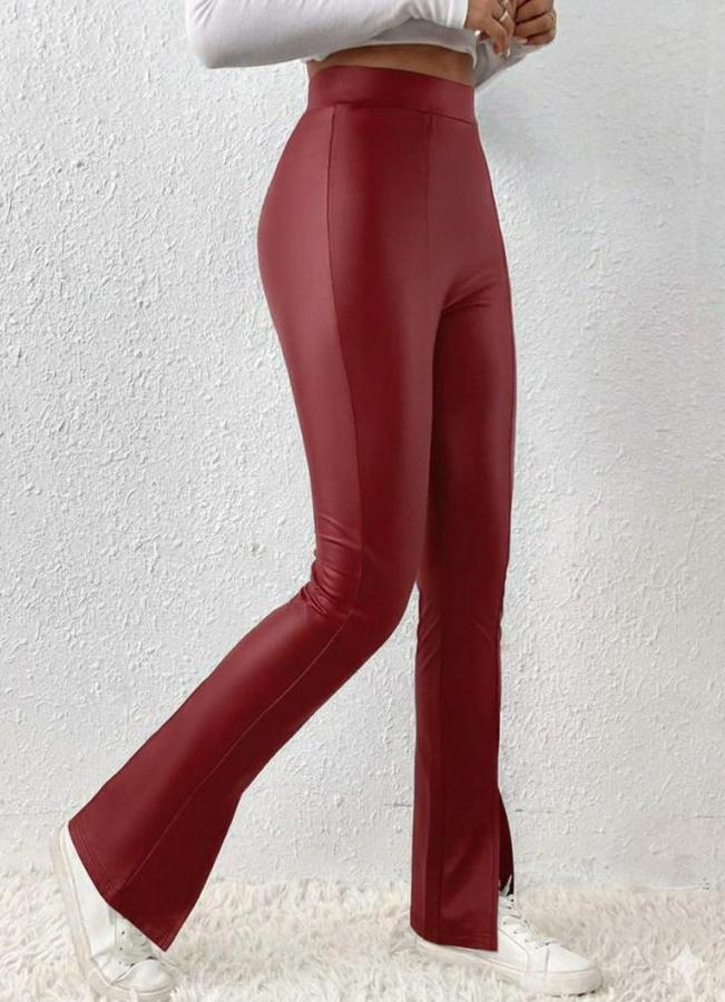 Yüksek Bel Önden Yırtmaçlı Deri Tayt