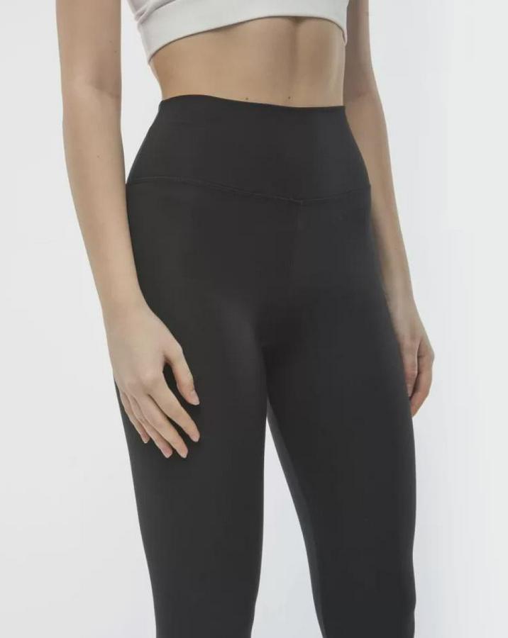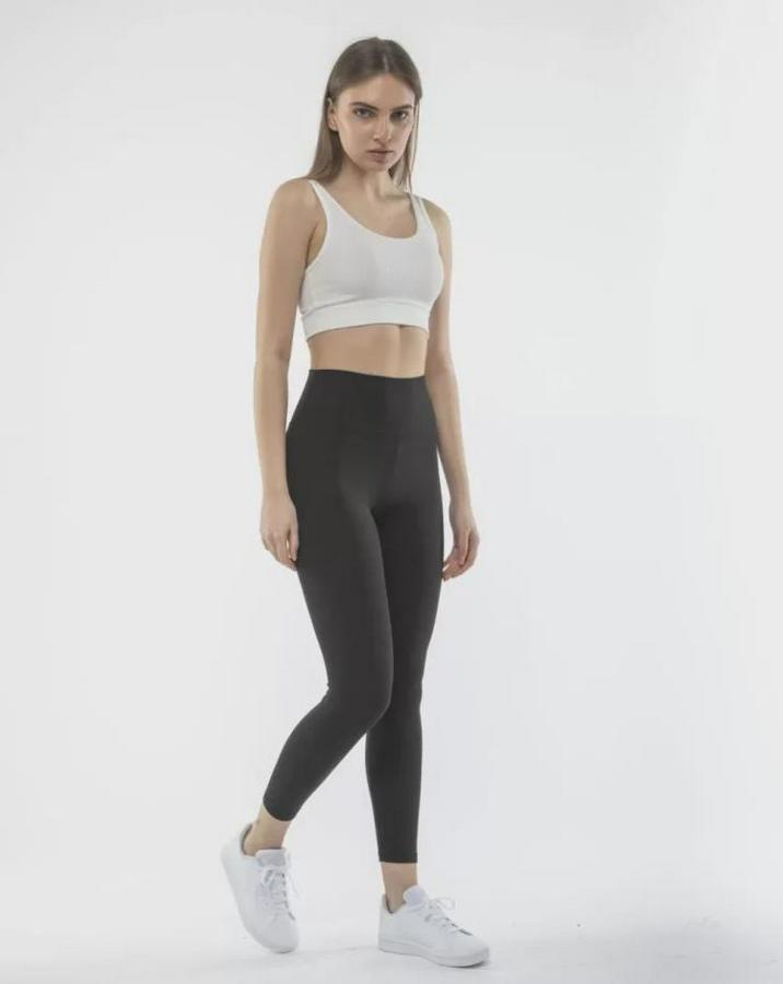 Yüksek Bel Sporcu Düz Tayt - Siyah