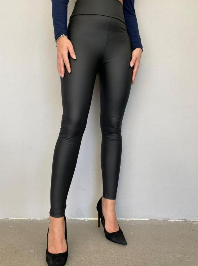 Yüksek Bel Toparlayıcı İçi Şardonlu Deri Tayt