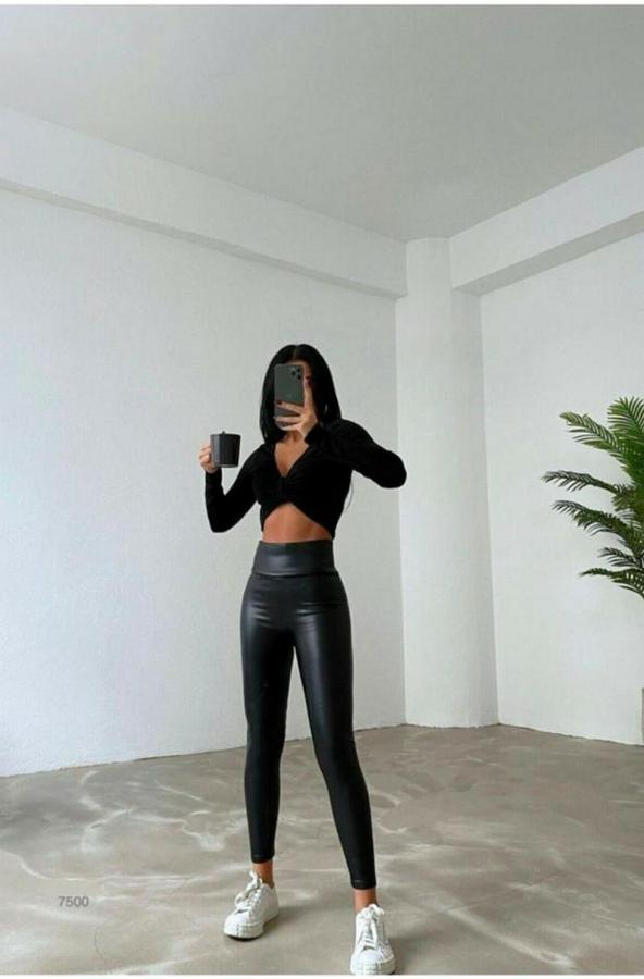 AnasayfaTüm ÜrünlerAlt GiyimTaytYüksek Bel Toparlayıcı Içi Şardonlu Deri Tayt