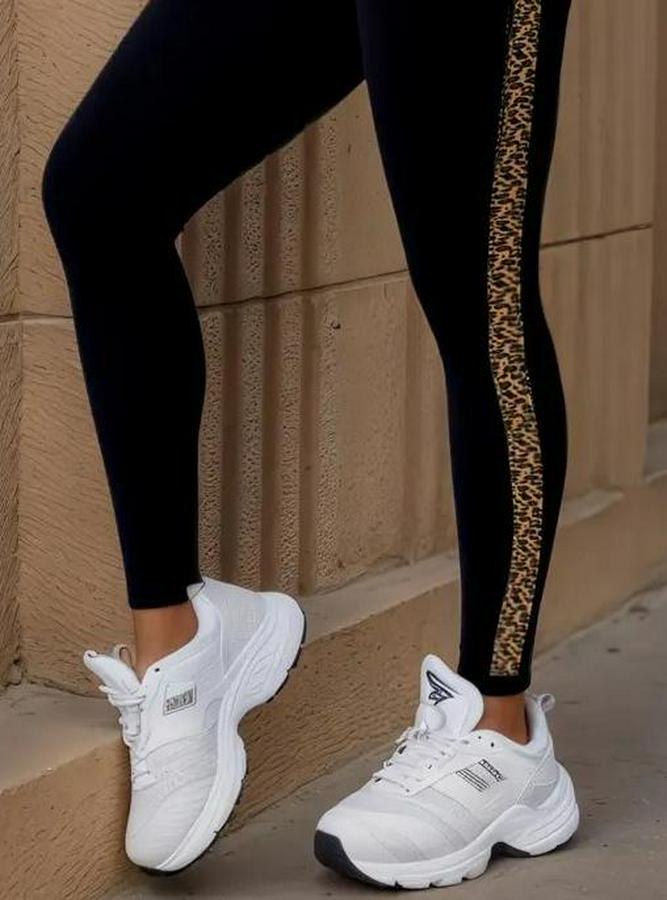 Yüksek Bel Yandan Leopar Desen Detaylı Dalgıç Tayt