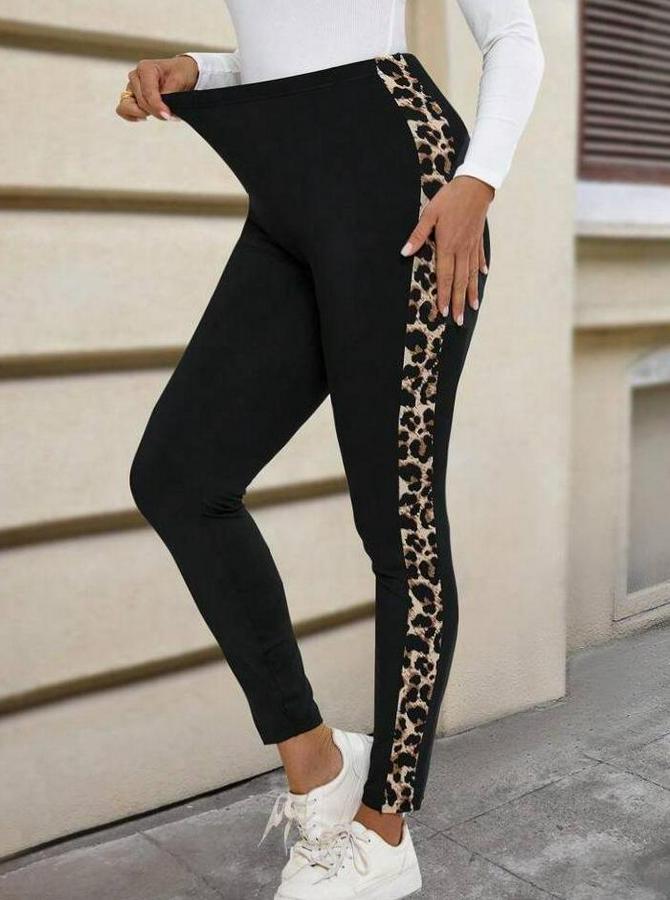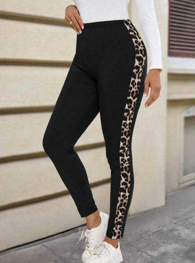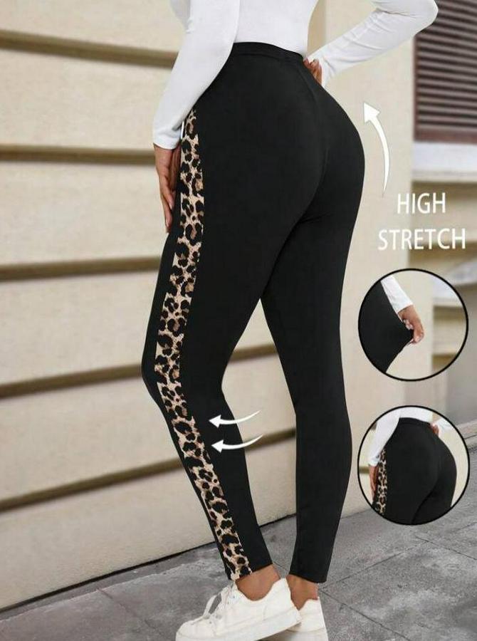 Kadın Yüksek Bel Yanları Leopar şerit Detay Dalgıç Tayt
