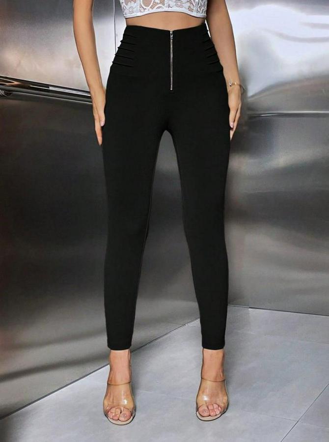 Kadın Yüksek Belli önden Fermuar Ve Nervur Detaylı Dalgıç Tayt