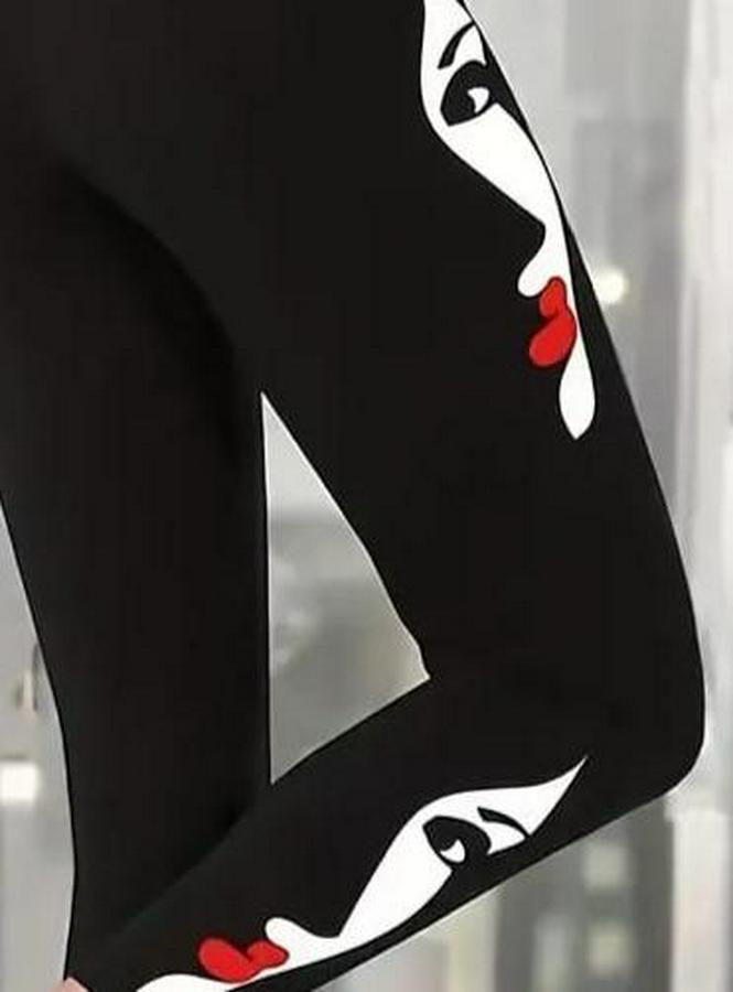 Kadın Yüz Baskılı Dalgıç Kumaş Tayt