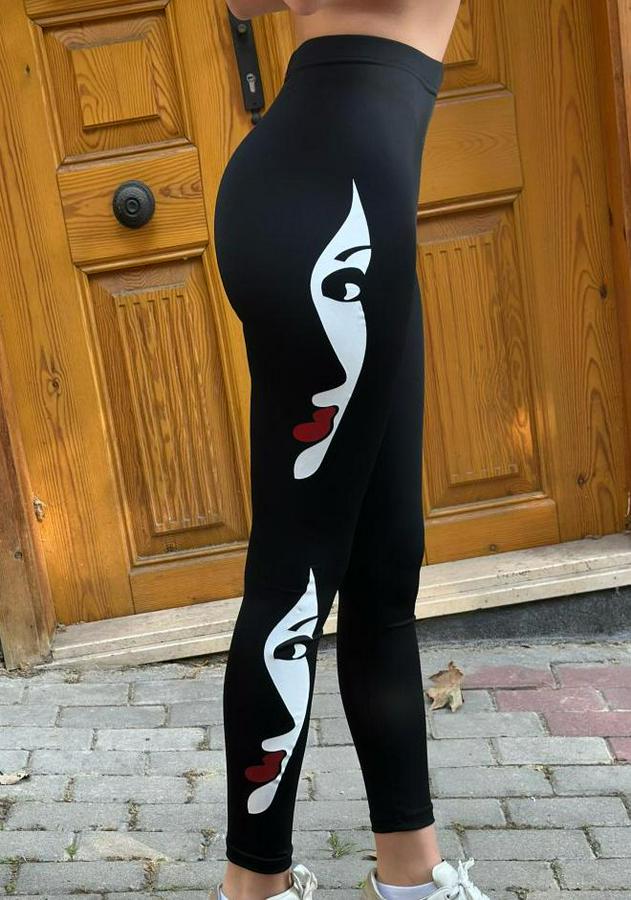 Kadın Yüz Baskılı Dalgıç Kumaş Tayt