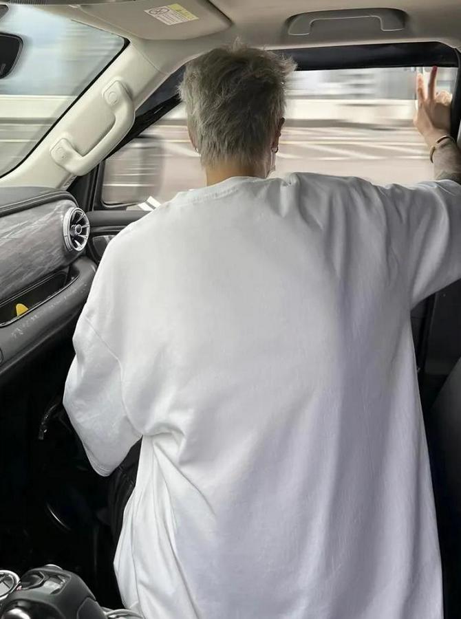 Baskılı Oversize Bisiklet Yaka T-shirt - Beyaz