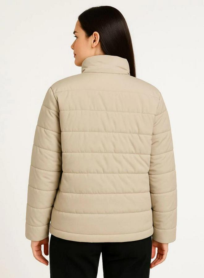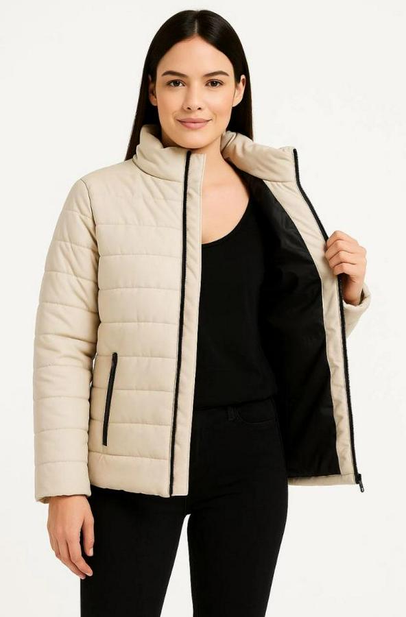 Bomber Mont Ceket – Su İtici Kumaş, Kapitone Astarlı, Fermuarlı, Kışlık - Bej