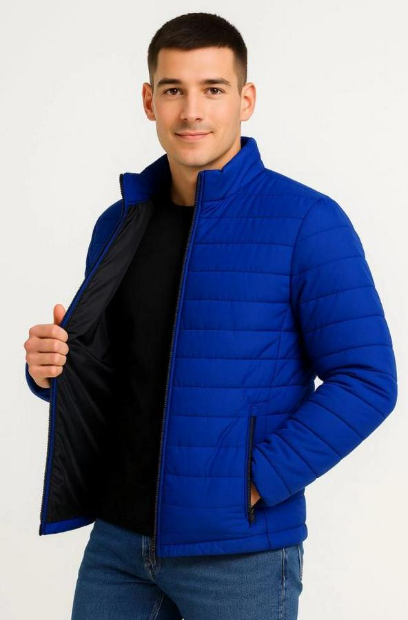 Erkek Bomber Mont Ceket – Su İtici Kumaş, Kapitone Astarlı, Fermuarlı, Kışlık - Saks Mavisi