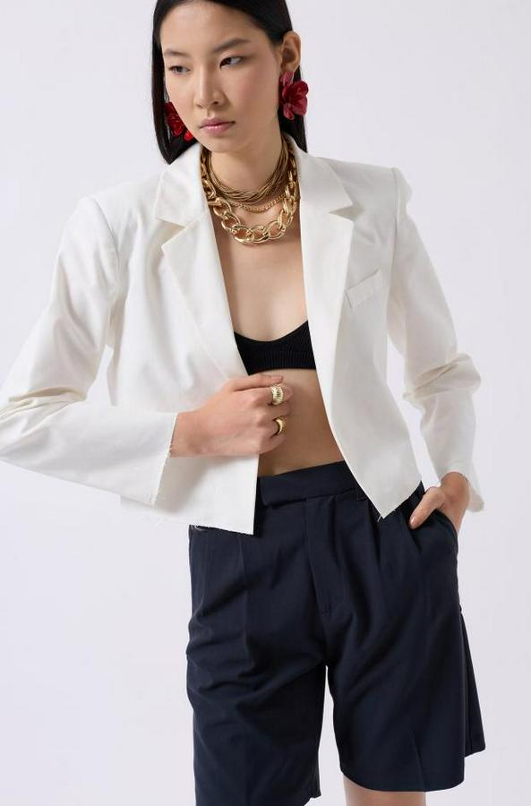 Crop Keten Blazer Ceket