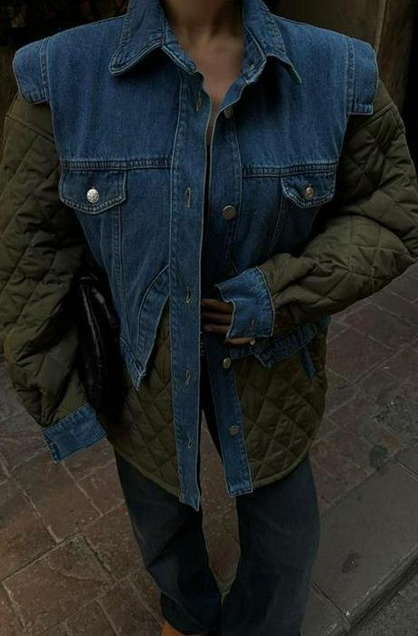 AnasayfaTüm ÜrünlerDış GiyimCeket & YelekCeketDenim Garnili Kapitone Ceket 7071