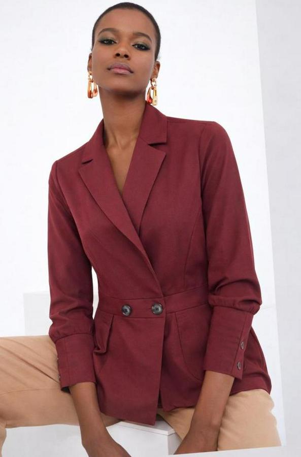 Düğme Ve Plise Detay Arkası Lastikli Ceket