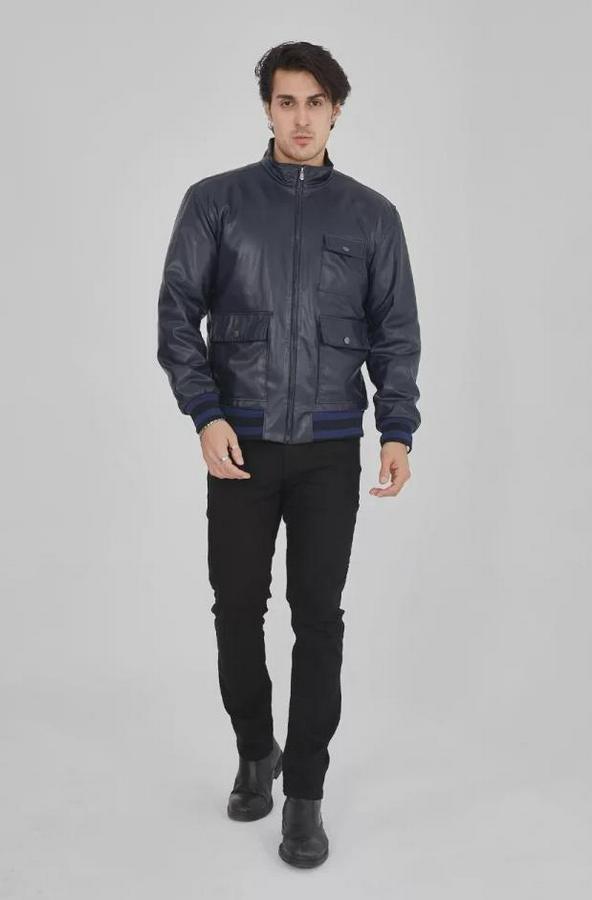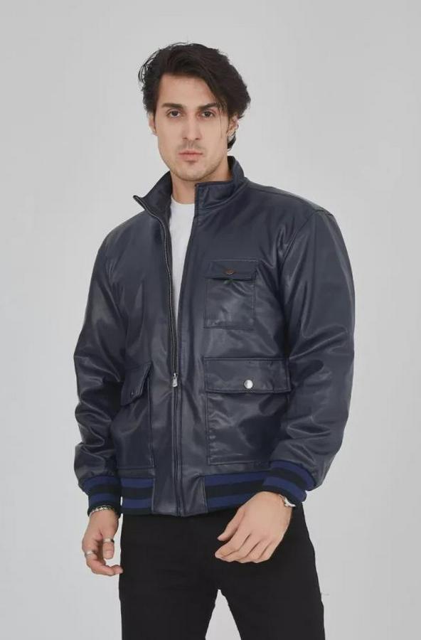Erkek Fermuarlı İçten Elyaf Ve Astarlı Suni Deri Ceket - Lacivert