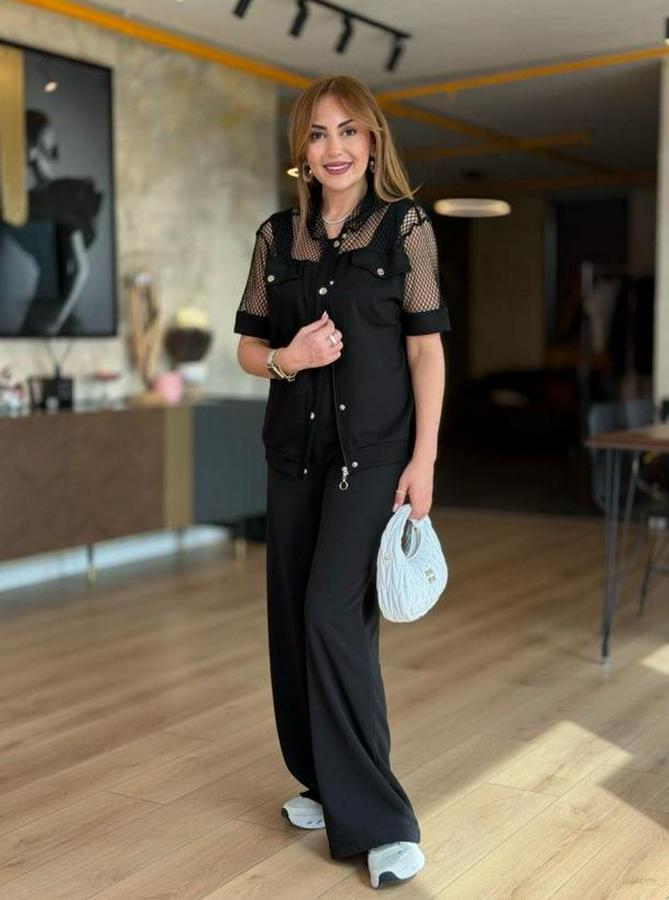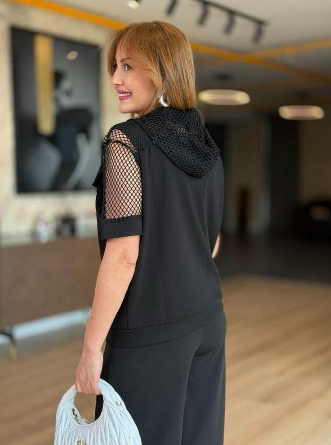 Kadın Fileli Kapüşonlu Modal Ceket