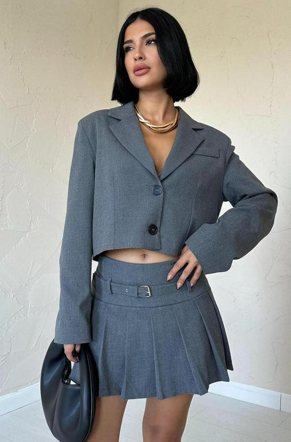 Gri Bomber Ceket Ve Pileli Etek Takım