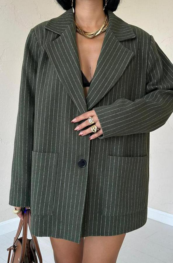 Haki Çizgili Oversize Ceket