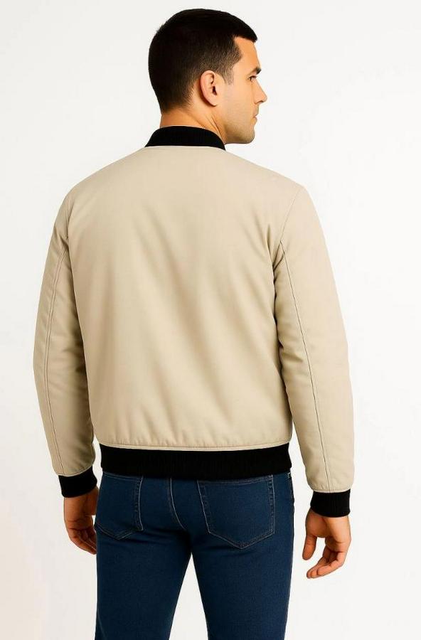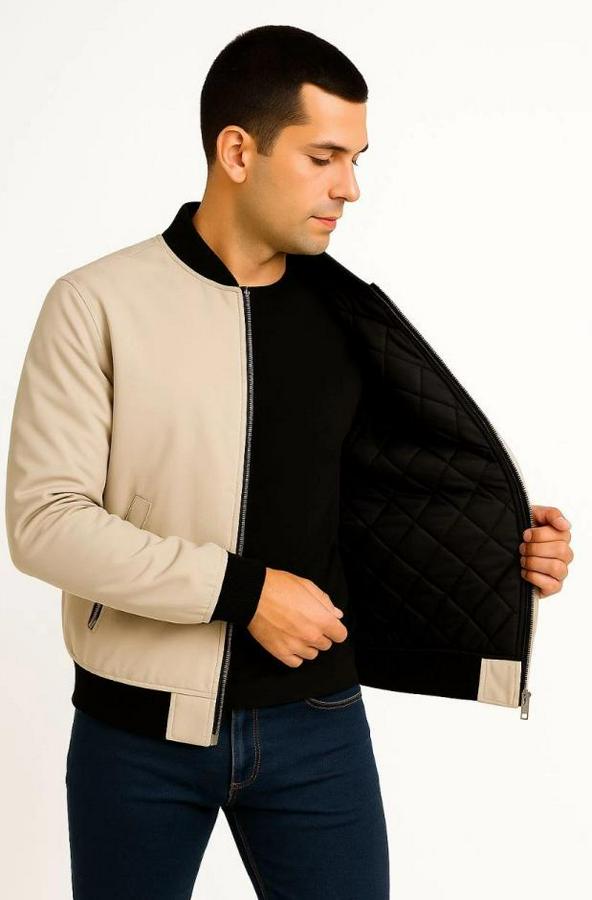 Erkek Içi Astarlı Fermuarlı Bomber Mont Ceket - Bej
